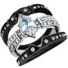 2.50 Ct Marquise Cut CZ Black Stainless Steel Wedding Ring Set Women's Size 5-10