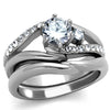 1.19 Ct Round Cut Cubic Zircona Stainless Steel Wedding Ring Set Women's Sz 5-10