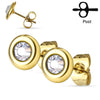 MJ-SE2908 Pair of Clear Crystal Set Disc 316L Surgical Steel Ear Studs