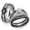 Black & Silver Stainless Steel & Titanium His & Her 4pc Wedding Ring Band Set