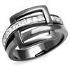 This light black ion plated cocktail ring is Amazing! Made of solid stainless steel and finished in a high quality light black ion plating. This ring features 13 (2.5mm) princess cut clear cubic zirconia stones in a channel setting. Total carat weight approx 1.04 diamond equivalent. Makes a perfect gift for anyone! This ring has Top quality stones and displays amazing enriched clarity just like real diamonds! Stainless Steel jewelry is durable, hypo-allergenic and will not tarnish or oxidize over time.