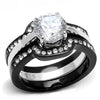 Women's 2.25 Ct Round Cut Cz Black Stainless Steel Wedding Ring Set Size 5-11
