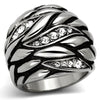 This beautiful Women's wide band twisted leaf fashion ring is Amazing! Made of solid stainless steel and a high polished finish (no plating). This ring features 13 clear crystal stones in a paved setting. The total carat weight is approx. .50 diamond equivalent. This ring has Top quality stones and displays amazing enriched clarity just like real diamonds! Stainless Steel jewelry is durable, hypo-allergenic and will not tarnish or oxidize over time.