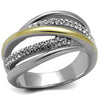 Womens Stainless Steel Two Toned 14k Gold Plated Micro Pave Crystal Fashion Ring