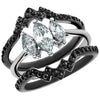 2.25 Ct Marquise Cut CZ Black Stainless Steel Wedding Ring Set Women's Size 5-10
