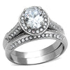 Stainless Steel 316 2.65 Ct Oval Cut Cubic Zirconia Halo Wedding Ring Set Sz 5-10