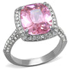 This beautiful AAA grade 6.38ct rose color, emerald cut cubic zirconia engagement ring is Amazing! Made of solid stainless steel with a high polished finish (no plating). This ring features a 6 carat (12mm x 10mm) rose color, emerald cut center stone in a prong setting, accented by 31 (1mm) round brilliant cut stones in a pave setting to for a halo. The ring’s band has an additional 23 (1mm) stones on each side. The total carat weight is approx. 6.38 diamond equivalent. This ring has Top quality stones and displays amazing enriched clarity just like real diamonds! Stainless Steel jewelry is durable, hypo-allergenic and will not tarnish or oxidize over time.