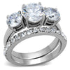 ARTK2177 Stainless Steel 4.17 Ct Round Cut 3 Stone Engagement & Wedding Ring Set Size 5-10