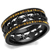 Womens Black Ion Plated Stainless Steel Topaz Crystal Crown & Cross Ring Sz 5-10
