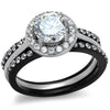 ARTK2620 Women's 2.25 Ct Halo Round Cut Cz Black Stainless Steel Wedding Ring Set Sz 5-10