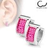 MJ-SE7077 Pair of Square Crystal Set Stainless Steel Hoop/Huggie Earrings