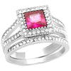 1.64 Ct Princess Cut Ruby Zirconia Stainless Steel Halo Wedding Ring Set Sz 5-10