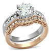 2.80 Ct Round Cut Zirconia Rose Gold IP Stainless Steel Wedding Ring Set Sz 5-10